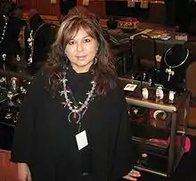 Gail Bird is a contemporary Kewa jeweler, known for her collaborations with Navajo jeweler Yazzie Johnson and their themed concha belts.[60]