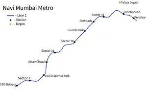 - "Navi Mumbai Metro Line 1: Stations, Fare, Route Map, Status, & Timeline". Mumbai Metro Times - Your Metro Guide. Retrieved 3 May 2022.