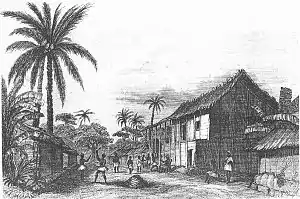 An 1880 guide said the towns of King Bell and King Aqua, "separated only by a little brook, are apparently of great extent and considerable population. The houses are neatly built of bamboo, in wide and regular streets, with numerous plantain and cocoa-nut trees, and even large fields of maize... A considerable trade has been carried on for many years with the natives, who from their activity in collecting palm oil, and their intercourse with Europeans, have become a large and important community, possessing a high degree of civilization".[7]