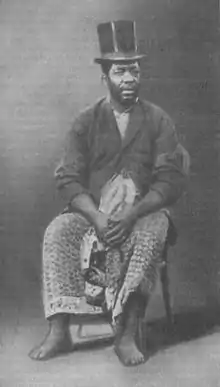 Douala was a dependable if minor source of slaves for the Atlantic Slave Trade.[4] The British became active in suppressing the trade in the 1820s. In November 1829 the British ship "Eden" seized the Brazilian slave trader "Ismenia" of Rio de Janeiro after it had given its trade goods to the then King Bell for the purpose of obtaining slaves.[5] On 7 March 1841, King Bell's predecessor signed a formal treaty with William Simpson Blount, commanding the British ship Pluto, in which he agreed to suppress the sale or transport of slaves in his territory.[6]