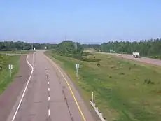 Route 15 is 79 kilometres (49 mi) long and is in the southeastern corner of the province of New Brunswick. Starting at the north end of the Petitcodiac River Causeway, it loops around the city of Moncton on Wheeler Boulevard, then turns northeast from Dieppe to Shediac. From there, it turns east and bypasses Cap-Pelé crossing the Scoudouc River, then southeast to meet the Trans-Canada Highway at Port Elgin. The highway is a divided freeway from Moncton to just east of Shediac, where it remains a controlled-access highway until east of Cap-Pele.