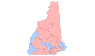 The New Hampshire Senate is the upper house of the New Hampshire General Court, alongside the lower New Hampshire House of Representatives. The Senate has been meeting since 1784.[1] The Senate consists of 24 members representing Senate districts based on population. There are 14 Republicans and 10 Democrats currently serving in the Senate.