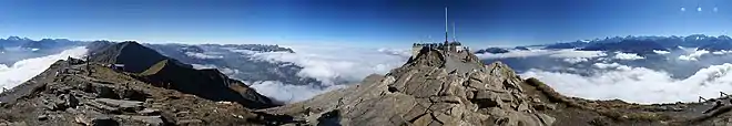 The Niesen is a mountain peak of the Bernese Alps in the Canton of Bern, Switzerland. The summit of the mountain is 2,362 metres (7,749 ft) in elevation.