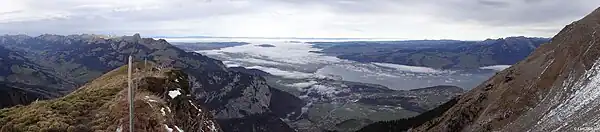 It overlooks Lake Thun, in the Bernese Oberland region, and forms the northern end of a ridge that stretches north from the Albristhorn and Mannliflue, separating the Simmental and Kandertal valleys.[3]