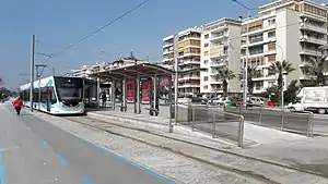 Nikah Sarayı is a light-rail station on the Karşıyaka Tram line of the Tram İzmir network. The station consists of an island platform serving two tracks. Nikah Sarayı is located within the Karşıyaka Waterfront Park (Turkish: Karşıyaka Sahil Parkı), on the south side of Cemal Gürsel Boulevard, near the Karşıyaka Matrimonial Office (Turkish: Nikah Sarayı) from which the station gets its name. Nikah Sarayı station was opened on 11 April 2017, along with the entire tram line.[1]