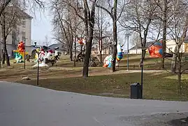 Although the French Pavilion itself was popular, most visitors did not see the rooftop terrace where the sculptures were installed.[59] In 1968, the sculptures were re-displayed at the Albright-Knox Gallery in Buffalo, New York, and then for a year in New York City's Central Park.[56][51][59] In 1971, some of the artworks were purchased by the Moderna Museet, and permanently installed nearby in an outdoor sculpture garden on Skeppsholmen, an island in central Stockholm.[59][51][60]