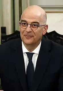 Nikolaos "Nikos" Dendias (Greek: Νικόλαος Δένδιας; born 7 October 1959) is a Greek lawyer and politician of the conservative New Democracy party who has been serving as Minister for National Defence in the government of Prime Minister Kyriakos Mitsotakis since 2023. He is a Member of the Hellenic Parliament for Athens, and previously served as Minister for National Defence from November 2014 to January 2015 and as Minister for Foreign Affairs from July 2019 to May 2023.