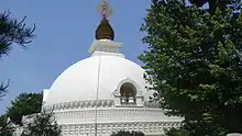 The most recognizable achievement of Nipponzan-Myōhōji is peace pagodas (stupas), that have been erected in various locations around the world, the first of which was inaugurated in 1954 at Kumamoto in Japan. Since then cities such as London,[8] New Delhi, Vienna, Comiso (in Italy) and Tokyo have all received peace pagodas.