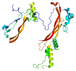 Noggin, also known as NOG, is a protein that is involved in the development of many body tissues, including nerve tissue, muscles, and bones. In humans, noggin is encoded by the NOG gene.[5] The amino acid sequence of human noggin is highly homologous to that of rat, mouse, and Xenopus (an aquatic frog genus).