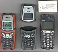 The Nokia 5210 is a mobile phone manufactured by Nokia. Announced on 19 November 2001, it was released in early 2002.[1] The 5210 is designed for use in tough conditions and is dust, shock and water resistant.[2] It features rubber Xpress-on shells, WAP over CSD and a built-in thermometer. The thermometer displays the internal temperature of the phone's battery. This feature is also present on other phones that have "netmonitor" enabled.