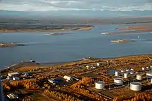 Norman Wells (Slavey language: Tłegǫ́hłı̨ [t͡ɬʰɛkṍhɬĩ] "where there is oil") is a town located in the Sahtu Region, Northwest Territories, Canada. The town, which hosts the Sahtu Regional office, is situated on the north side of the Mackenzie River and provides a view down the valley of the Franklin and Richardson mountains.[8]