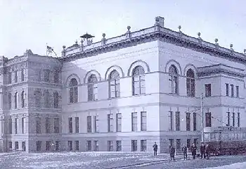 The Liberty Memorial Building is home to the State Library, as well as offices for the North Dakota Parks & Recreation Department.[15] The building's construction was authorized by the state's legislature in 1919 in response to an increase of governmental departments and the project was finished by 1924 with a cost of $350,000. The building originally housed the State Historical Society Museum, the Adjutant General, the State Library Commission, and the supreme court until the State Library occupied it. The building is the oldest facility still on the capitol grounds and was renovated in 1982 to conform with modern building codes.[16]