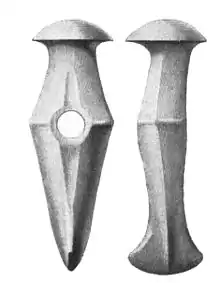 According to Penka, the first to propose a Nordic Urheimat, the primitive Indo-European people had to be sedentary farmers native of the north, formed without external interference since the Paleolithic.[2] The presence of a term to indicate copper (*ayes) in the reconstructed Proto-Indo-European vocabulary would restrict the homeland (Urheimat) in a culture of the late Neolithic or the Chalcolithic. Terms in favor of a northern location would be, among others, the ones to indicate the beech (bhāghos) and the sea (*mori).[2] Others, such as Kossinna, identified specifically the Chalcolithic Corded Ware culture (c. 2900–2300 BC, but at the time known as Battle-Axe culture or, in German, Streitaxtkultur, and dated to c. 2000 BC) with the Proto-Indo-Europeans.[5]