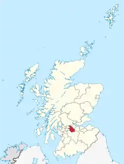 The largest part of North Lanarkshire, being the approximately two-thirds of the council area lying generally south of the Luggie Water, was in the historic county of Lanarkshire. Lanarkshire had existed as a shire from around the time of King David I, who ruled Scotland from 1124 to 1153.[1] The county took its name from the original county town at Lanark, now in South Lanarkshire, which had been the site of the first Parliament of Scotland under Kenneth II in 978.[2] The northern parts of what is now North Lanarkshire were in the counties of Dunbartonshire and Stirlingshire prior to 1975, with Cumbernauld and the area generally north of Luggie Water and south of the River Kelvin being in Dunbartonshire, and Kilsyth and the area north of the Kelvin being in Stirlingshire.[3] Prior to the 1975 reforms there were five burghs in the area now covered by North Lanarkshire:[4]