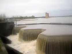 North Lanarkshire lies in the Central Valley of Scotland, to the east of Glasgow. It lies on the Scotland's north–south watershed with the River Clyde flowing through the west of the county on its way to the Irish Sea, and the River Almond in the east emptying into the Firth of Forth near Edinburgh.[14] The northern areas consist of forests as well as higher areas such as the Kilsyth Hills.[3]