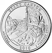 In 2010, Grand Canyon National Park was honored with its own coin under the America the Beautiful Quarters program.[14] On February 26, 2019, the Grand Canyon National Park commemorated 100 years since its designation as a national park.[15]