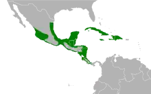 The northern jacana ranges Mexico to Panama, although they occasionally visit the southern United States,[8] with vagrants being seen in places such as Arizona.[9] It mainly lives in coastal areas. Jacanas live on floating vegetation in swamps, marshes, and ponds.[4]