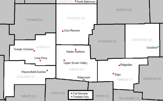 The Northwest Central Conference is an OHSAA athletic league located in parts of northwest and western Ohio. The league came into existence in the 2001–2002 school year.[1] The NWCC supports 10 league sports: Boys and Girls Cross Country, Boys Golf, Football, Volleyball, Boys and Girls Basketball, Baseball and Softball.