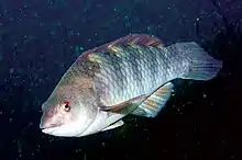 Notolabrus fucicola, the banded parrotfish, blue wrasse, kelpie, New Zealand banded wrasse, purple parrotfish, saddled wrasse, Southern purple wrasse, Southern wrasse, winter bream or yellow-saddled wrasse, is a species of wrasse native to the eastern Indian Ocean, off eastern Australia and all around New Zealand on rocky, weedy reef areas. Aging work in New Zealand suggested these wrasses can live at least 35 years.