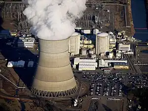 As of October 2014, the Nuclear Regulatory Commission (NRC) has granted license renewals providing 20-year extensions to a total of 74 reactors. In early 2014, the NRC prepared to receive the first applications of license renewal beyond 60 years of reactor life as early as 2017, a process which by law requires public involvement.[10] Licenses for 22 reactors are due to expire before the end of 2029 if no renewals are granted.[11] Pilgrim Nuclear Power Station in Massachusetts was the most recent nuclear power plant to be decommissioned, on June 1, 2019. Another five aging reactors were permanently closed in 2013 and 2014 before their licenses expired because of high maintenance and repair costs at a time when natural gas prices had fallen: San Onofre 2 and 3 in California, Crystal River 3 in Florida, Vermont Yankee in Vermont, and Kewaunee in Wisconsin.[12][13] In April 2021, New York State permanently closed Indian Point in Buchanan, 30 miles from New York City.[13][14]