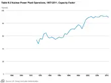 Average capacity factor of US nuclear power plants, 1957–2011