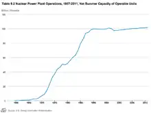 Net summer electrical generation capacity of US nuclear power plants, 1949–2011