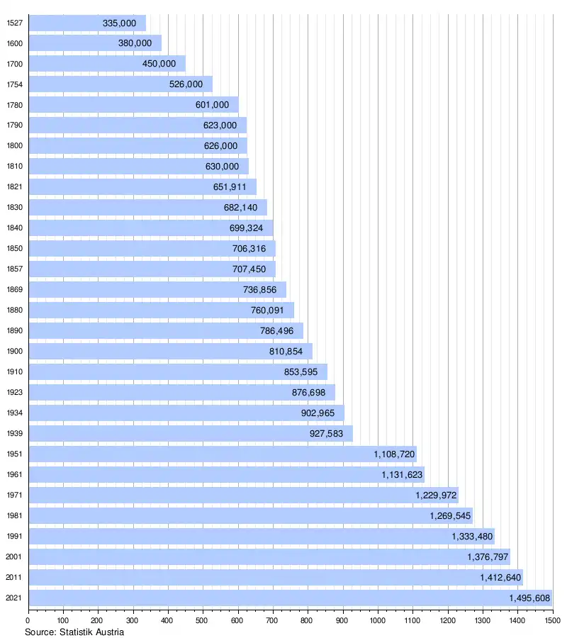 As of January 1, 2021, 1,495,608 people resided in the state, of which 107,318 (7.17%) were EU/EEA/CH/UK citizens and 96,623 (6.46%) were third-country nationals.[3] The majority of the immigrant population in recent decades has come from Germany, Southeastern Europe, and Turkey, with 1.77% from Germany, 1.48% from Bosnia and Herzegovina, 1.19% from Serbia, Montenegro, and Kosovo, and 1.03% from Turkey. Due to the large wave of refugees since the second half of 2015, the number of people from Afghanistan has increased to 6,721 (0.45%) and from Syria to 6,023 (0.4%). The Mühlviertel has been inhabited by a few hundred Sinti since the Middle Ages, very few of whom actually profess to belong to their ethnic group in censuses.