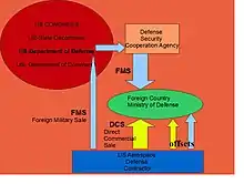 Foreign Military Sales are indirect sales of weapons produced by one or more U.S. contractors through an agency of the Department of Defense, the Defense Security Cooperation Agency (DSCA).[30][31] In a way, DSCA acts as Prime Contractor's agent in promoting and selling U.S. made weapons to foreign countries. The known FMS disadvantage is that DSCA adds to the final sale price a small percentage for its own administrative costs; the advantage is some free training with U.S. Armed Forces for joint international operations.[32] In this type of sale, however, there are two important aspects in regards to the offset business.