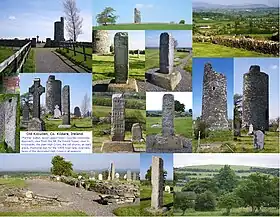 Old Kilcullen was raided by Vikings, landing at the location of the modern town, at least twice, in 936[7] and 944.[8] In the former raid, it is reported that a thousand prisoners were taken, which suggests that the population at the time was substantial. Other mentions in the Annals include reference to the deaths of key church figures, including Bishops and Abbots (sometimes the one person).[9][10][11][12]