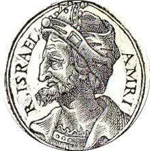Omri (/ˈɒmraɪ/ OM-ry; Hebrew: עָמְרִי, ‘Omrī; Akkadian: 𒄷𒌝𒊑𒄿 Ḫûmrî [ḫu-um-ri-i]; fl. 9th century BC) was, according to the Hebrew Bible, the sixth king of Israel. He was a successful military campaigner who extended the northern kingdom of Israel. Other monarchs from the House of Omri are Ahab, Ahaziah, Joram, and Athaliah. Like his predecessor, king Zimri, who ruled for only seven days, Omri is the second king mentioned in the Bible without a statement of his tribal origin. One possibility, though unproven, is that he was of the tribe of Issachar.[1]