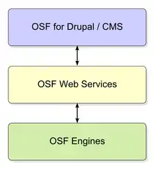 This intermediate OSF Web Services layer may also be accessed directly via API or command line or utilities like cURL, suitable for interfacing with standard content management systems (CMSs), or via a dedicated suite of connectors and modules that leverage the open source Drupal CMS. These connectors and modules, also part of the standard OSF stack and called OSF for Drupal, natively enable Drupal's existing thousands of modules and ecosystem of developers and capabilities to access OSF using familiar Drupal methods.[12]