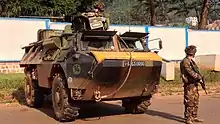 On 28 January, 300 Séléka soldiers were evacuated from Kasaï camp by Rwandese soldiers.[53] On the same day, French troops were attacked by Séléka elements near RDOT camps, on the Northern side of the town, where around 1000 Séléka troops were stationed. The French replied in kind, using ERC 90 Sagaie wheeled tanks and killing a dozen Séléka fighters.[54]