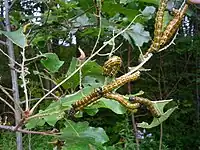 Oaks, Quercus species, especially red oaks (Tuskes et al. 1996). Wagner (2005) also reports chestnut, birch, hazel, hickory and maple.
