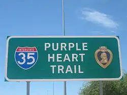 Sign on Interstate 35 designating the Purple Heart Trail.