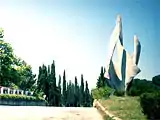 A statue named "Orlyonok" stands in the center of the camp, being part of the Memorial Plaza. It is similar to another statue with the same name in the city of Chelyabinsk.