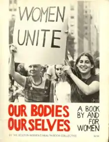 As a result of their success, the women formed the non-profit Boston Women's Health Book Collective (which now goes by the name Our Bodies, Ourselves) and published the first 276-page Our Bodies, Ourselves in 1973. The collective published it with the major publisher Simon & Schuster only on the condition that they would have complete editorial control and that nonprofit health centers could purchase copies at a significant discount.[7] It featured first-person stories from women, and tackled many topics then regarded as taboo. Since then, over four million copies have been sold.[8] It has been considered one of the founding events of the women's health movement in the United States.[9]
