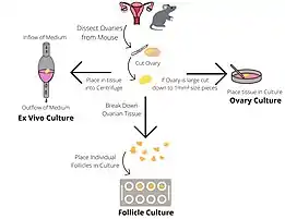 Ovarian culture is an in-vitro process that allows for the investigation of the development, toxicology and pathology of the ovary.[1] This technique can also be used to study possible applications of fertility treatments e.g. isolating oocytes from primordial ovarian follicles that could be used for fertilisation.[1]