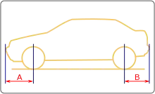 Journalist Paul Niedermeyer has proposed an overhang ratio (OHR) to characterize the combined size of the front and rear overhangs, normalized to vehicle length, computed as .[3] Because most vehicles are styled so the wheelbase is typically equal to four wheel+tyre diameters,[2] the minimum OHR (with no bodywork projecting beyond the front or rear wheels) is approximately 20%.
