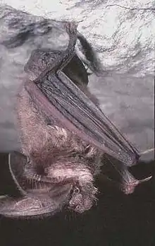 | An Ozark big-eared bat on a cave ceiling | |