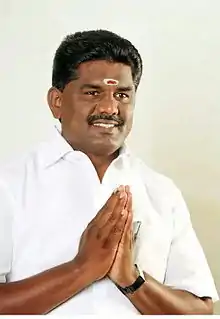 P. R. Senthilnathan (born 1968) is a politician from Tamil Nadu. He was born in Nagadi village in the Sivaganga district. He studied at Sevugan Annamalai college in Devakottai. After finishing his B.Sc. he went to Bengaluru to study for an LL.B. degree in Bengaluru University. He started out as a lawyer and became well known for his good skills. He entered politics in 1988 by joining AIADMK. He made a small beginning in the party as its Nagadi branch secretary in 1992 and served as district secretary of Amma Peravai between 2007 and 2013. He was appointed Sivgangai district secretary of AIADMK in April 2013, and Chairman of Tamil Nadu Backward Classes and economic development corporation in June 2013.[1][2]