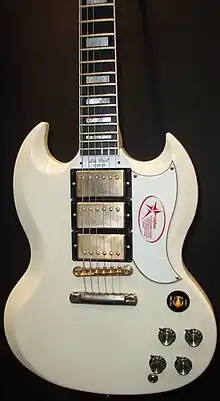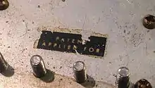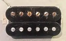 A P.A.F., or simply PAF ("Patent Applied For"), is an early model of the humbucker guitar pickup invented by Seth Lover in 1955, so named for the "Patent Applied For" decal placed on the baseplate of each pickup.[1] Gibson used the PAF on guitars from late 1956 until late 1962, long after the patent was granted.[1] They were replaced by the Patent Number (Pat No) pickup, essentially a refined version of the PAF. These were in turn replaced by "T-Top" humbuckers in 1967, and production ended in 1975. Though it was not the first humbucking pickup ever, it was the first to gain widespread use, as the PAF's hum-free signal, tonal clarity, and touch sensitivity when paired with higher-gain amplifiers made the pickups popular with rock and blues guitarists.[2] The PAF is an essential tonal characteristic of the now-famous 1957–1960 Gibson Les Paul Standard guitars, and pickups of this type have gained a large following.