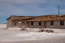 The first hotel was built in 1993–1995 [3][4] out of salt blocks in the middle of the Salar de Uyuni,[5][6] and soon became a popular tourist destination.[7] It had 12 double rooms, a common bathroom, and no shower.[5] Its location in the center of a desert produced sanitary problems, as most waste had to be collected manually. Mismanagement caused serious environmental pollution and the hotel had to be dismantled in 2002.[8][9]