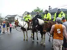 Athens and Ohio University police maintain a large presence at the party, often mounted police patrol the street and area to prevent the event from spiraling out of control.[3] The event often produces large amounts of trash, and police are on hand the next day to supervise cleanup and ensure the houses do not violate city trash ordinances. Consequently, cleanup of the event often falls upon the residents of the respective houses.[5]