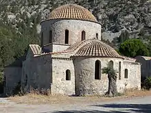 The main church of the monastery appears to have been built in the twelfth century and has a cross-in-square plan of the Byzantine type surmounted by a high dome. The narthex, on the west side, has simple Gothic rib vaulting and probably dates to the fifteenth century.[6] Writing in 1918, George H. Everett Jeffery, described the establishment as a ruin.[7]