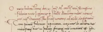 The first of these was delivered on 11 January 1452 on the occasion of his embassy to the emperor at Padua. It is preserved in four Italian manuscripts. Barbo implicitly recognizes the universal power of the emperor and ends by paying homage to the empress, Eleanor of Portugal.[7] The second was delivered at Brescia in 1455 when he and Giovanni Moro handed command of the army to the condottiere Bartolomeo Colleoni. Only an excerpt survives and the manuscript labels it an oratiuncula. The third speech was delivered before King Louis XI of France at Tours on 8 December 1461, during his embassy.[2] It was edited by Agostino Valier and published in 1719.[1]