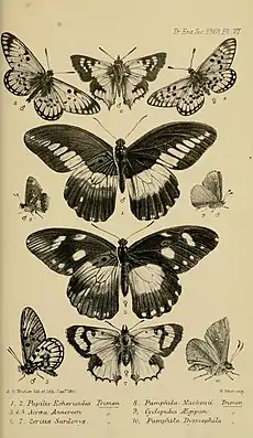 - Trimen, R. 1868. On some undescribed species of South African butterflies, including a new genus of Lycaenidae. Transactions of the Entomological Society of London 1868: 69-96.