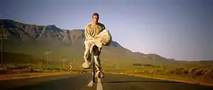 In the video, Chris Martin, dressed as an elephant, escapes from the zoo. He finds an abandoned sharing system bicycle, rides it to Belsize Park London Underground station, and takes the train to Heathrow Airport in an attempt to hitch-hike his way to another country, doing so finally by stowing away inside a suitcase. An aerial shot reveals that his initial destination was Cape Town, South Africa. He is then seen wandering around Johannesburg at one point, walking past Nelson Mandela Bridge and a set of railway tracks in Braamfontein. He then earns enough money, which appears to be ZAR 67.05 (roughly equivalent to GBP 5.34 or US$8.40), by busking on the street, which shows portions of the song's lyrics in sync, to buy a bike; the shopkeeper suggests a unicycle instead. After a seemingly hopeless wander on his new unicycle (in which Martin takes off his elephant head for a second), he comes across three other elephants, who are the rest of Coldplay, playing the song in the veld. Will Champion is dressed as Snorky from the fictional band The Banana Splits, identifiable by his glasses and polka-dot ears. He starts playing with them, and the band eventually play a sell-out stadium concert together, before returning to the veld where they run towards the camera. The video was shot on location in London, Cape Town, the Klein Karoo in the Western Cape and Johannesburg.[17] The zoo that Martin escapes from is Paradise Wildlife Park in Broxbourne, Hertfordshire. The bike shop shown is Woodstock Cycleworks in Woodstock, Cape Town. The concert segment was filmed during Coldplay's Mylo Xyloto Tour concert at the FNB Stadium on 8 October 2011. After performing this song live, the band donned their elephant heads and gloves and pretended to perform as the last minute of the studio recording played. The concertgoers were encouraged to cheer and sing along as if they were actually performing. As of August 2021, the video has over 1.48 billion views on YouTube.