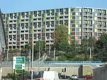 Park Hill is a housing estate in Sheffield, South Yorkshire, England. It was built between 1957 and 1961, and in 1998 was given Grade II* listed building status.[1] Following a period of decline, the estate is being renovated by developers Urban Splash into a mostly private mixed-tenure estate made up of homes for market rent, private sale, shared ownership, and student housing while around a quarter of the units in the development will be social housing.[2][3][4] The renovation was one of the six short-listed projects for the 2013 RIBA Stirling Prize. The Estate falls within the Manor Castle ward of the City. Park Hill is also the name of the area in which the flats are sited. The name relates to the deer park attached to Sheffield Manor, the remnant of which is now known as Norfolk Park.