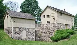 The 1887 cider mill, located adjacent to the grist mill, is a two-story structure, with a gabled frame second story atop an ashlar first floor foundation.[2] The cider mill is now used as a small museum.[7]