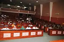 Until August 2017, the parliament had an upper house, the Senate (Majlis al-Shuyukh/Sénat). The Senate had 56 members, 53 members elected for a six-year term by municipal councillors with one third renewed every two years and 3 members elected by Mauritanians abroad. It was abolished in 2017, after a referendum.[1][2]
